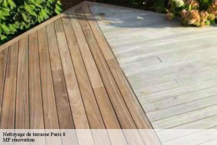 Si votre terrasse est victime de l’envahissement de ces végétaux parasites, vous pouvez faire appel à MF rénovation. Les mousses sont de véritables fléau qui se répandent à une grande vitesse une fois que les conditions sont réunis. Le plus vite ces mousses sont traitées, moins votre terrasse en subira les dégâts alors n’attendez pas. Avec les services de qualité que nous proposons à Paris 8, votre terrasse sera vite comme neuf. Nous utiliserons des produits anti-mousse de qualité après le passage au nettoyage à l’eau pour lutter efficacement contre les mousses. Cela permettra d’éliminer les spores et les résidus restants sur votre terrasse.